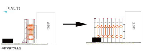 體積可調(diào)通風(fēng)除塵房是一種可以根據(jù)實際在使用時的工件大小,自動調(diào)節(jié)房間大小,調(diào)節(jié)房間通風(fēng)量形成封閉或半封閉的環(huán)保除塵通風(fēng)房,不使用時收縮合攏到一處的特殊環(huán)保通風(fēng)除塵房設(shè)備。他是先進新一代的環(huán)保設(shè)計理念及技術(shù)的集成,適合現(xiàn)代人的空間觀念,使其應(yīng)用范圍非常廣泛。