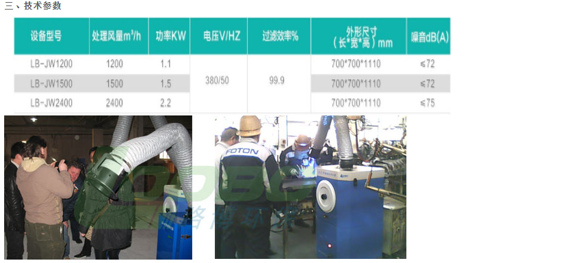 LB-JW 型焊接煙塵凈化器是一種可移動機械式凈化器,適用于焊接、拋光、切割、打磨等工序中產生煙塵和粉塵的凈化。