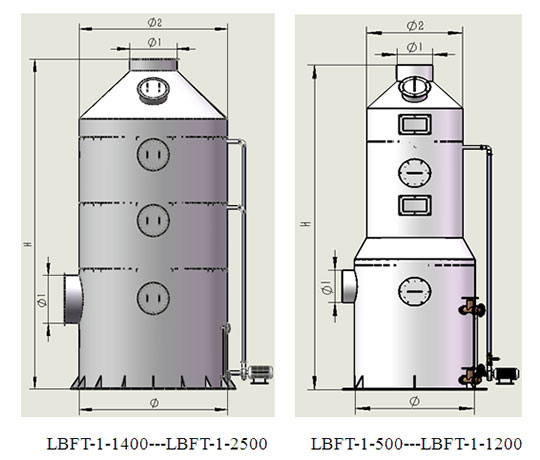 路博LBF系列廢氣凈化塔廣泛應用于化工、醫藥、石油等行業生產過程中的尾氣,廢氣、尾氣(如氟化氫、二氧化硫、氯化氫、氯氣、硫化氫、氮氧化物、各種酸霧等)、洗滌、噴淋、水洗、吸收、中和、泡沫、干燥、脫化、除霧、處理、凈化塔等凈化系統,具有設計先進、合理、新穎、汽液分離充分、吸收徹底、同等截面積吸收凈化面積大,效果更佳,根據國家《大氣污染物排放標準》( GB16297-1996 )規定,按不同介質,我公司分別采用水洗、填料、旋流、有機吸附、吸收處理凈化和更先進的動力波吸收凈化系統,按不同要求處理凈化率可達 80%~99.8% 。廢氣的吸收和凈化處理,達標排放。規格及技術指標